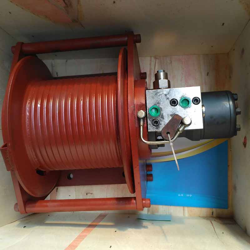 卷筒与制动系统:卷筒通过联轴器或齿轮与液压马达连接,缠绕钢丝绳以牵引负载;制动器多为液压释放、弹簧制动的常闭式结构,确保断电或故障时自动锁止。